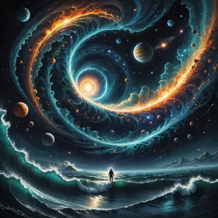Riding the Invisible Currents of the UniverseImagine standing on the edge of a vast cosmic ocean. But instead of water, this sea is made up of rippling waves of energy, light, and particles—space