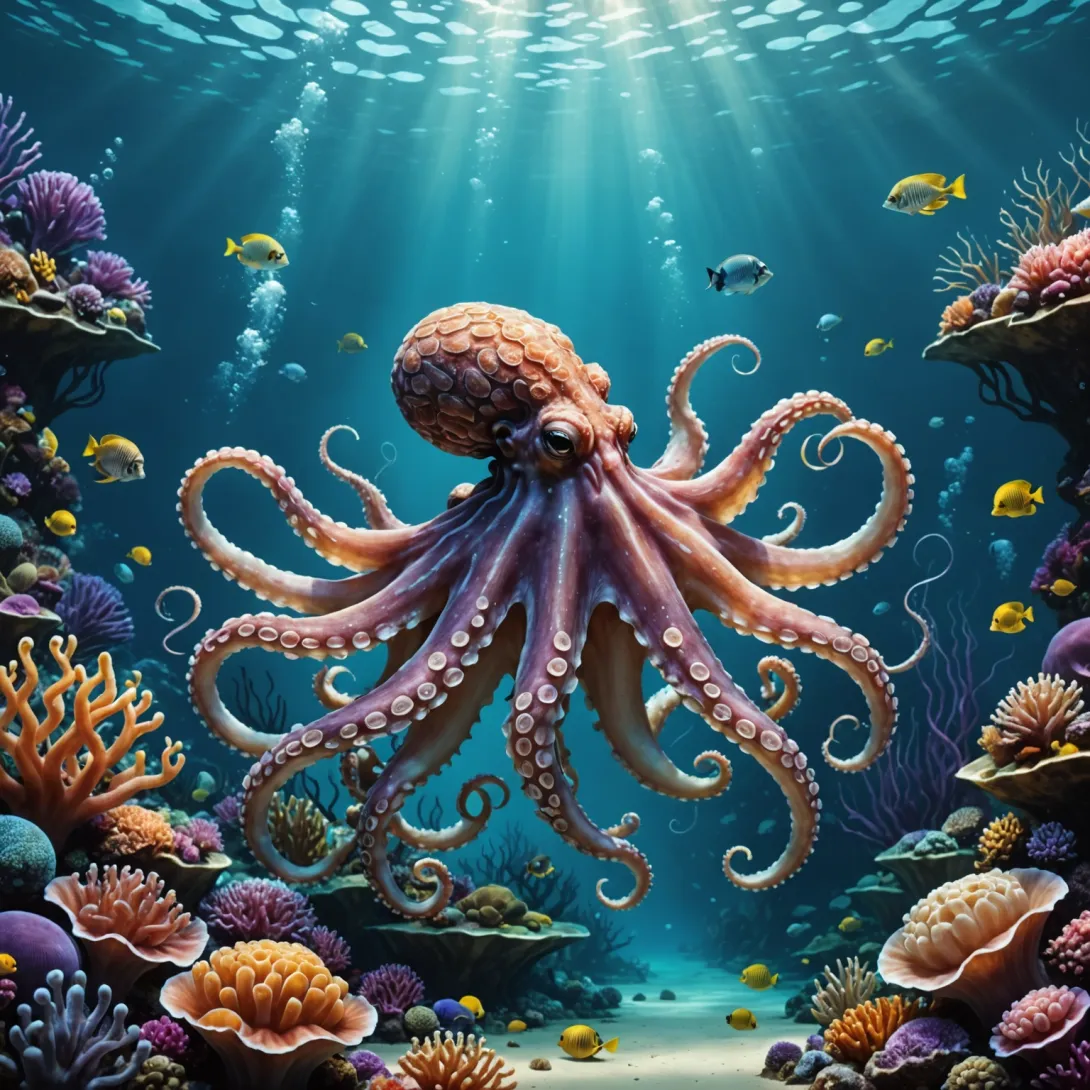 - Use Contrast: Play with light and shadow to highlight the octopus’s three-dimensional form and texture.